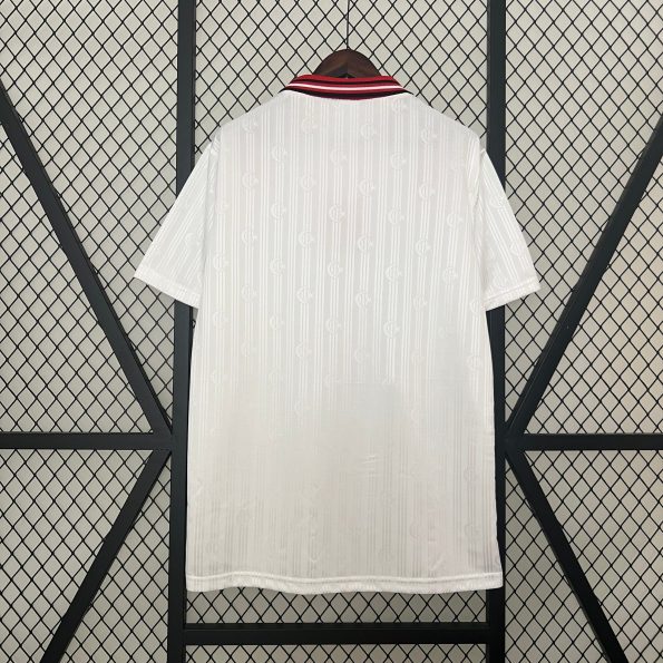Das Türkei-Auswärtstrikot von der EM 1996 ist ein Stück Fußballgeschichte mit starker symbolischer Kraft. Die weiße Basis mit roten Akzenten steht für Hoffnung, Herkunft und den Beginn einer neuen Ära. Ideal für Sammler, die die Anfänge des modernen türkischen Fußballs würdigen möchten.